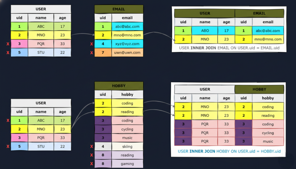 | Partitioning | Split large tables into smaller sections | Banking transactions by month |