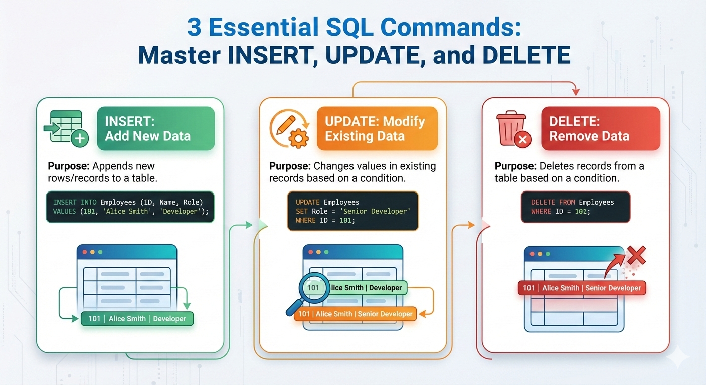 3 Essential SQL Commands: Master INSERT, UPDATE, and DELETE for Reliable Data Management